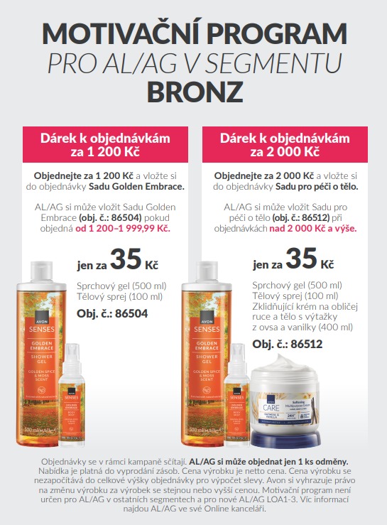Objednejte v říjnu za 1.200 Kč a přidejte si do své objednávky krémový sprchový gel (500 ml) a tělový sprej za doplatek 35 Kč, objednací kód 86504.
