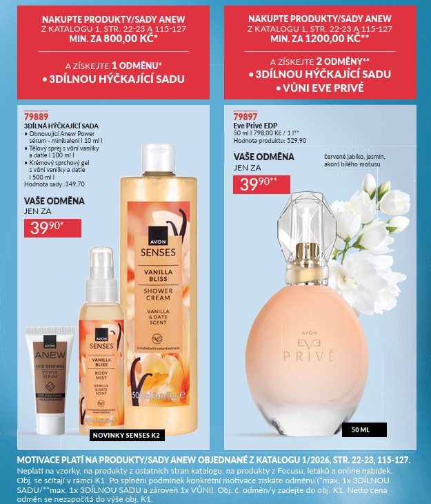 Z katalogových cen Vám se na faktuře vždy odečítá sleva 10-35% dle výše Vaší celkové objednávky. Výjimkou jsou výrobky v tzv. kombinované nabídce, kdy jejich nákup je podmíněn nákupem jiného výrobku. V tomto případě je na takové výrobky sleva vždy jen 10%. Jeden tištěný katalog na následující kampaň (měsíc) budete mít vždy zdarma v balíčku. Katalog kosmetiky Avon vychází jednou měsíčně. Dostupný je v tištěné i elektronické verzi.