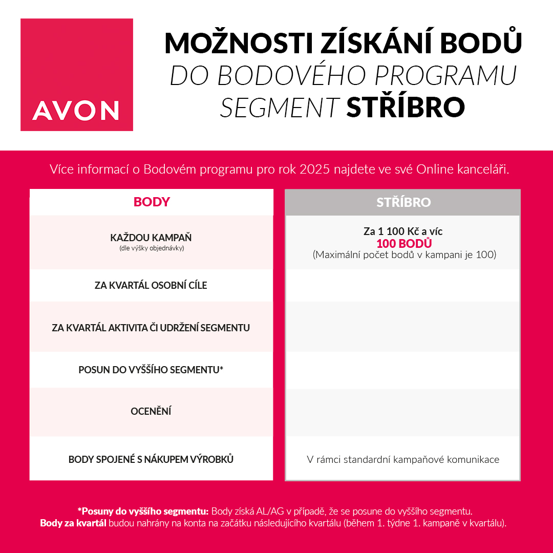 V Avon online kanceláři si můžete prohlédnout, v jakém segmentu jste a jaké máte výhody. Možná Vám do vyšší úrovně chybí jen kousek. Pokud byste chtěla vědět víc, klidně nám napište. Rádi Vám poradíme.
