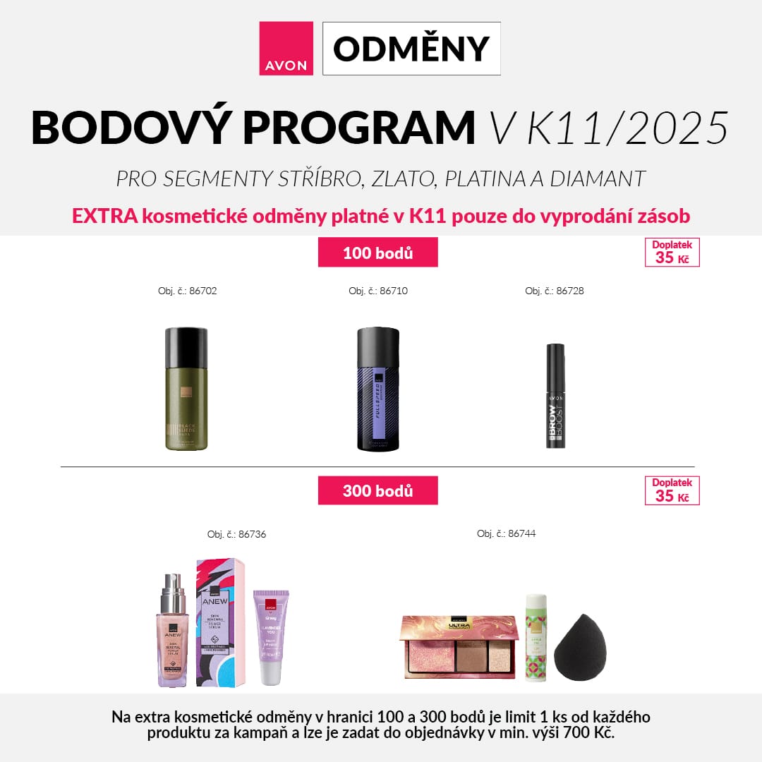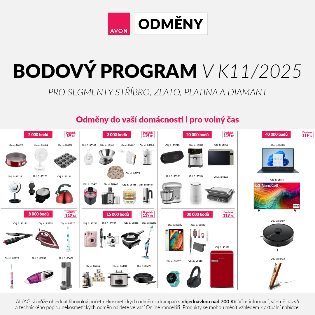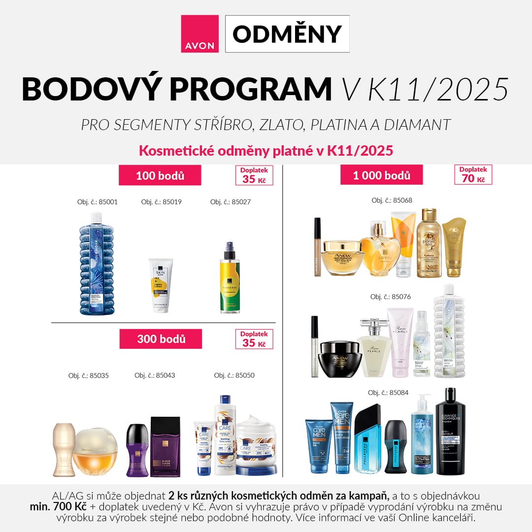 Proces reklamace se liší v závislosti na typu odměny. Pro kosmetické výrobky Avon a nekosmetické výrobky Avon platí standardní reklamační řád. Více informací nalezne AL/AG v Online kanceláři v sekci Zákaznický servis, pod odkazem vrácení zboží a reklamace.