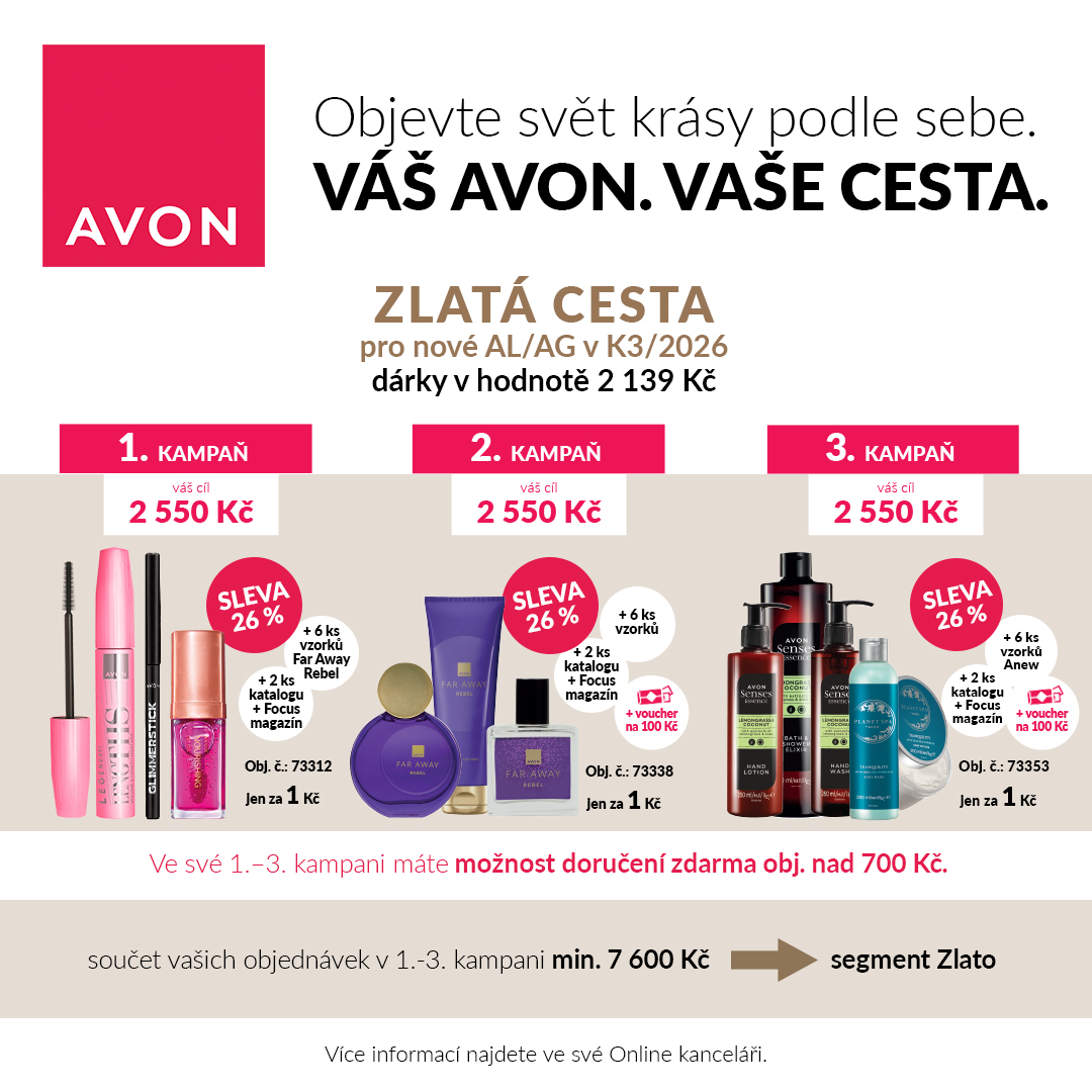 dosáhne hodnoty 7.600 Kč postoupíte do segmentu ZLATO Avon Odměn. Slevu 26%,
